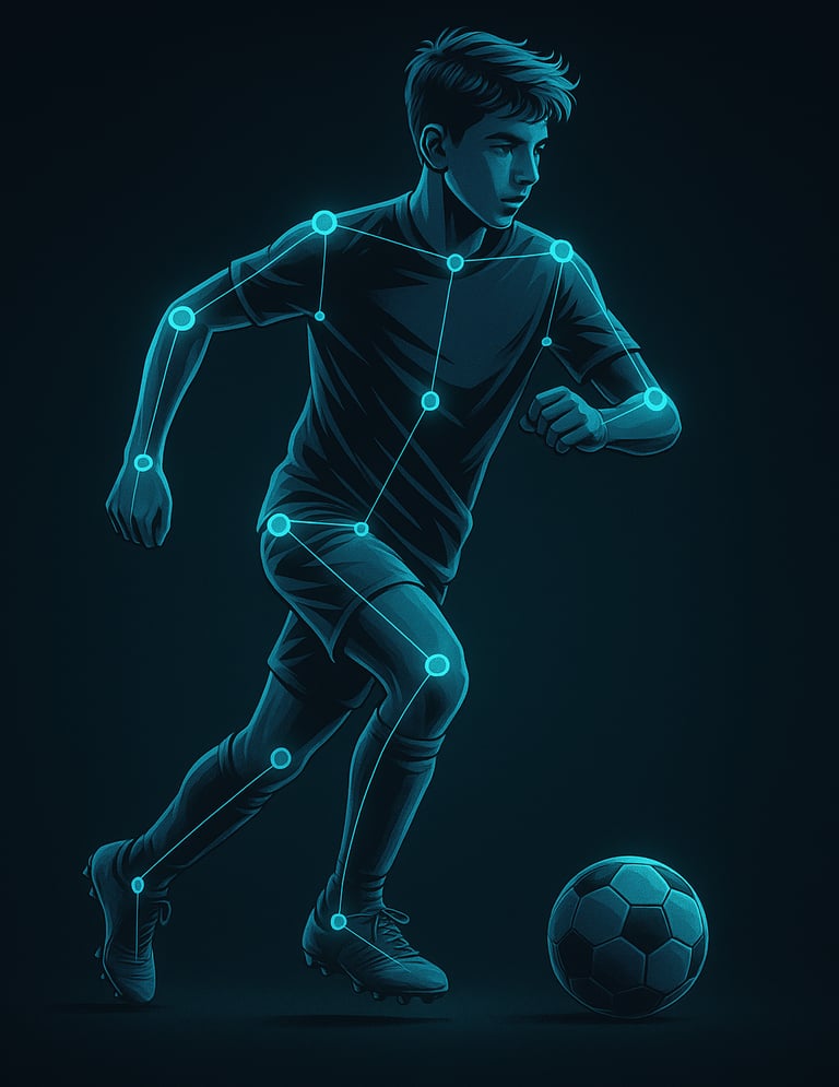 System automatycznie wykrywa zawodnika, śledzi jego ruch i rozkłada jego grę na dziesiątki parametrów. Analizujemy technikę (podania, strzały, drybling, pierwszy kontakt z piłką), taktykę (pozycjonowanie, czytanie gry, gra bez piłki), parametry fizyczne (szybkość, zwinność, wytrzymałość, siła) oraz elementy mentalne widoczne na boisku (determinacja, zaangażowanie, odporność w trudnych momentach)
